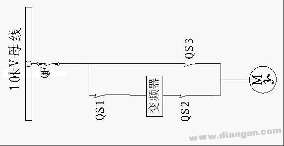 手动切换方式投资少,在检修变频器时有明显的断电时间,能够保证人身安全,但存在操作复杂、切换时间长,需要锅炉停炉、压火后进行人工操作,不符合锅炉要求连续运行的稳定性和经济性要求。如下图所示: