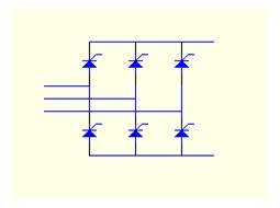 由6支晶闸管构成的三相桥式整流电路,晶闸管只用于控制通断不控制直流电压的大小。