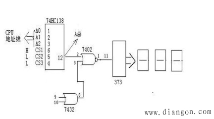 故障分析:首先 CPU 是否有正常工作,用示波器观察,看时钟频率且数据线有脉冲信号,证明 CPU 基本正常,而至 LED 数码管扫描信号 A 点应为脉冲而现在却为 L 电平,如下图。