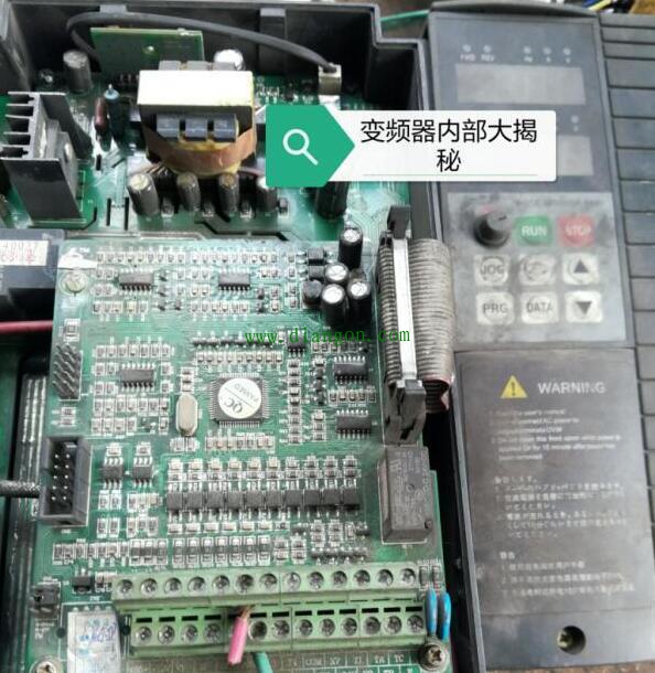 二、在维修或者拆卸通电后的变频器时,我们无需使用万用表检测直流母线电压,只需多加留意一下变频器内部线路中的电源指示灯就行。该LED指示灯不仅起到显示电源正常与否的作用,还能在断电后直观反映直流母线电压泄放情况(其实就是滤波电容电压),当该灯熄灭时表明直流母线电压已降到80V以下,只需稍等片刻就可放心进行后续工作了。