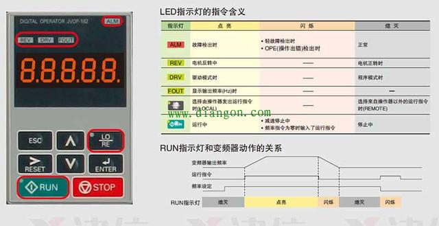 当安川变频器出现故障时,警告和报警通过以下两种方式显示: