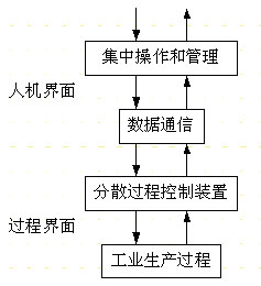 20世纪70年代中期以来过程计算机控制系统的发展进入以采用4C技术(计算机、通信、控制、CRT显示技术)为特征的集散型控制系统(DCS)的发展时期。从系统结构分析DCS可分为三大基本部分:分散过程控制装置部分、集中操作和管理系统部分以及通信系统部分。三部分的关系如图1所示。