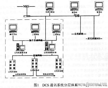 经过大量分析发现,基于开放性、可靠性和传输实时性考虑,目前各dcs系统的通讯网络毫无例外地采用分层结构,过程采集数据上传,控制数据下传,不同层次的通讯网络可以根据实际需要采用不同的拓扑结构和不同的通讯协议,各个层次的相互配合共同构成整体通讯体系。从目前来看,各DCS系统一般存在有车间级的现场总线通讯网络或者远程通讯网络、电子设备间的控制网络和控制室内的操作管理网络,如图1所示,按此配置典型的系统有ABB公司的PROCONTROLP、西门子公司的TELEPERMXP、日立公司的HLACS5000、贝利公司的Svmphony和Honeywell公司的TDC3000。为了简化系统分层结构,有些系统将控制网络和操作管理网络合并为一个网络,如西屋公司的OVATION、FOXBORO公司的I/A和MCS公司的MAXl000+。需要说明的是,图1只是示意图,各层网络拓扑结构可以是环型、总线型和星型任何一种。