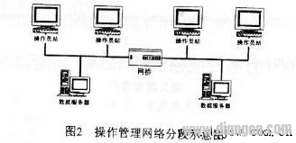 由于图]所示分层网络体系中一般都采用了双服务器和多操作员站的配置,因此可以将操作管理网络人为划分为两个相对独立的以太网,两个网络通过网桥连接,两个服务器分别挂接在两个以太网上,而操作员站则平分在两个网络上,例如目前一般一套机组DCS配有5个操作员站,因此可以按2、3分布,如图2所示。这样,在正常情况下,每个服务器都只服务与各自对应的操作员站,从而减少了网络传输负荷和服务器负荷,可以显著提高系统的响应速度度。如果出现异常情况,譬如一台服务器瘫痪,那么通过网桥两个以太网又成为一个整体,此时工作的服务器同时服务于所有操作员站,此时虽然响应速度稍微慢一些,但是完全不影响正常使用。采用这种方法不仅充分利用了两台服务器,而且只增加一个网桥的情况下就可以明显改变系统响应速度,因此是一种“低投入,高回报”的解决方案。根据作者的了解,目前贝利公司的SYMPHONY、ABB公司的PROCONTROI。P和日立公司的HIACS5000+都采用了该措施。