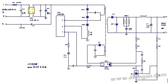 如果一台欧姆龙plc,上电后不显示了,往往是开关电源坏了。千万不要以为是多么难修复,因此而将这台PLC报销了是很可惜的。欧姆龙plc的开关电源往往是很简单的。本人据实物测绘的电路如下: