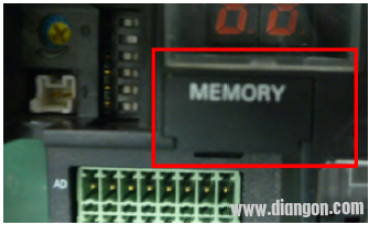 ②取出PLC 自带的内存盖板,装入带有不带密码程序的内存盒。