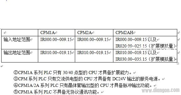 ①CPM1A/2A系列plc配置扩展模块时,注意下列事项: