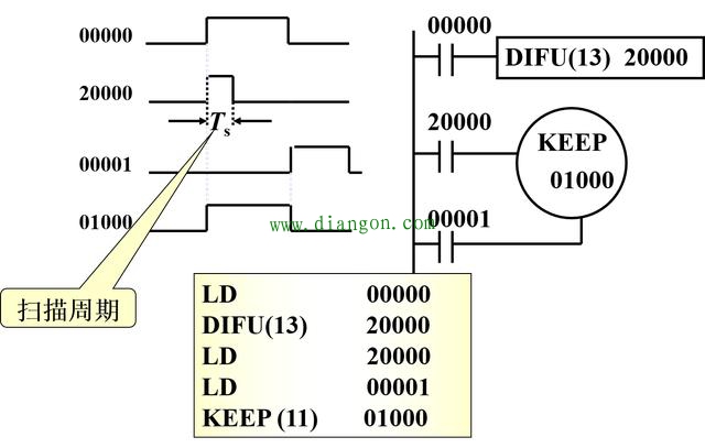 DIFU和DIFD指令的操作位只ON一个扫描周期。