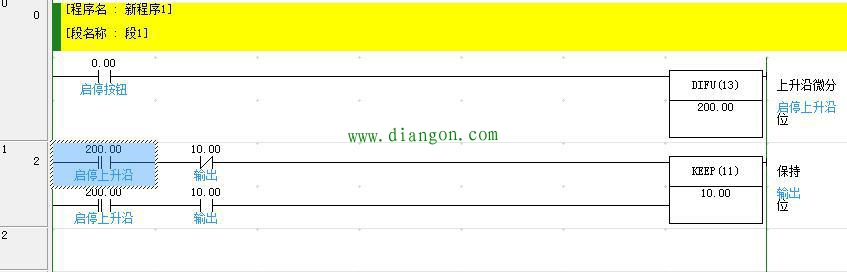 ,我需要写入一个DIFU 200.00然后在输出上升沿指令。最后面这个KEEP指令是欧姆龙专门的保持指令。图二详解介绍KEEP指令。