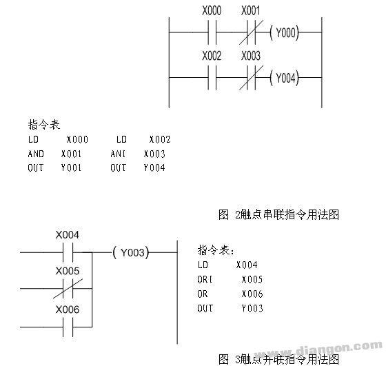3) 上述四个指令仅用于单个触点与前面电路连接,不适用于电路块与前面电路连接。