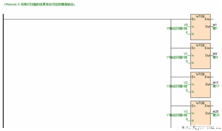 在工控行业中,有时候会碰到因为可编程控制器(plc)输入点的不够,而导致需要更换设备,浪费资源。对此,当实时性不需要那么高时,我们可以编写一个键盘的扫描程序来扩展输入的点数。因为扫描的方式是循环扫描,所以在实时性方面会有一定的欠缺。