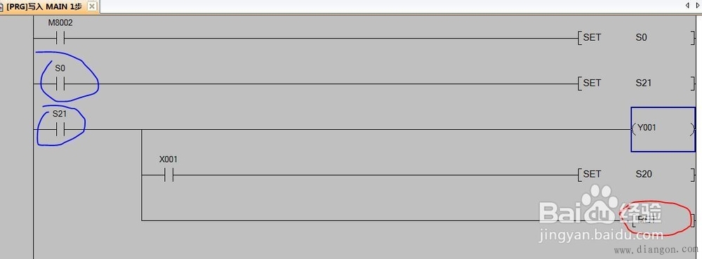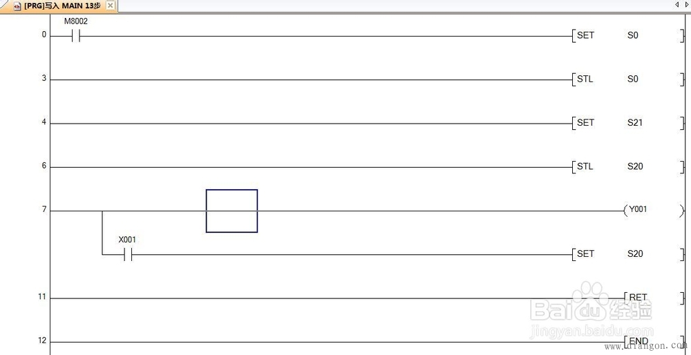 在三菱plc产品手册中会看到步进梯形编程指令,按照说明,编写如下图的梯形图。