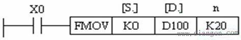 FMOV指令是将源元件中的数据传送到指定目标开始的n个目标元件中,这n个元件中的数据完全相同。FMOV指令使用说明如图所示。