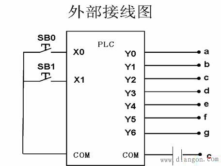 用PLC控制七段数码管循环显示数字0~9,显示间隔1s。