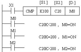 3)16位运算时占5个程序步,32位运算时占9个程序步。