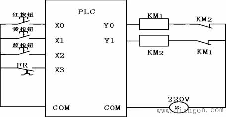 3.PLC控制电动机正反转外部接线图