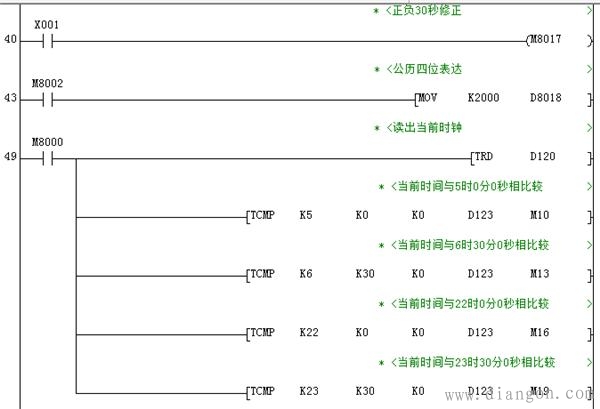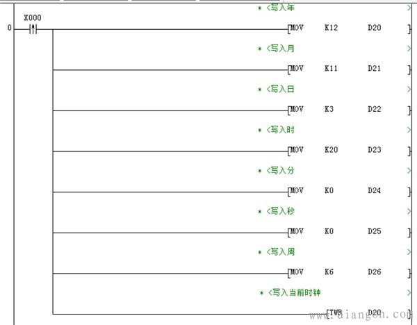 利用手头的三菱FX1N系列plc学习时钟控制,主要是利用三菱plc的时钟写入与读出指令 ,对室内的采暖设备实现定时开启与关闭。本例 控制即是实现对室内的采暖设备在早5时开启,6时30分关闭,晚22时开启,23时30分关闭。