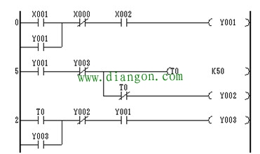 2、输入图2的梯形图,并将程序下载到PLC。
