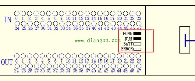 4、ERROR灯:如果这个灯常亮,说明比较严重了,最严重的就是主单元的硬件受损。如果灯闪烁,可能是参数出错,回路出错等等,需要借助PLC诊断。