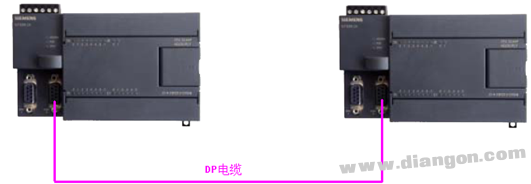 下面通过一个实例(两台S7-200 plc之间的通信)来介绍如何使用网络读写指令向导。首先,两个S7-200之间的硬件连接需要一根标准DP电缆加两个DP总线插头。两台S7-200的RS485通信端口连接方式,可参考以下图片中的连接方式(如果PLC有两个通信端口,则任意端口都可进行配置,本例中两个PLC均以Port 0口做PPI通信使用),如图1所示。