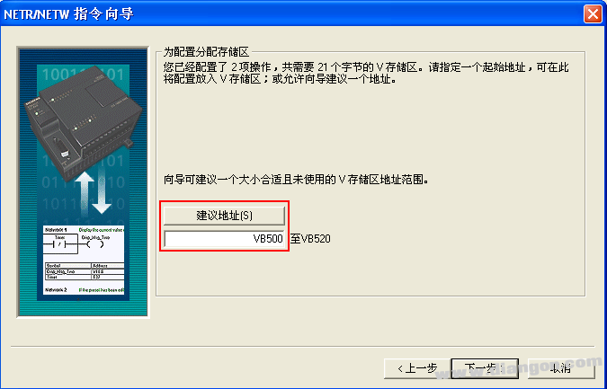 最后需要分配V存储区的建议地址,建议将V存储区起始地址设置的大一些(如图9所示),原则是避免和程序中已经应用到的V存储区地址有重叠。