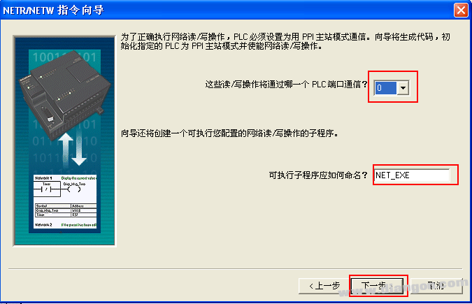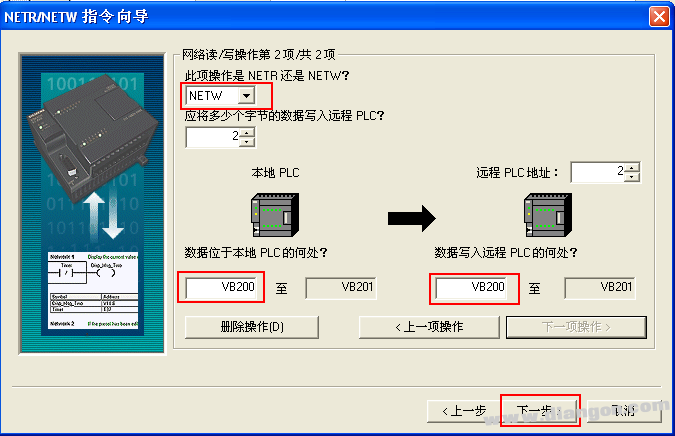 4) 每个CPU的端口只能配置一个网络读写指令向导。