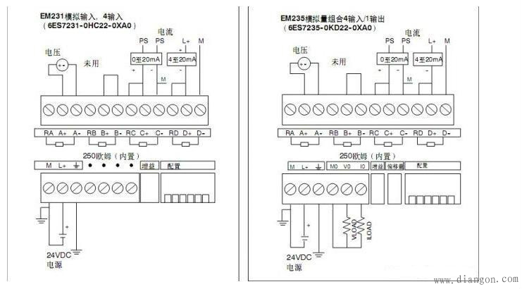 2.如果接入PLC卡是四根信号线,那就一定是四线制;难区别的主要还是只有两根信号线时,比较容易出错,所以我的第一条很重要。两线制是PLC提供24VDC的电源供仪表使用,即电源和电流信号共用两根线。(http://www.diangon.com/版权所有)四线制指仪表需要单独供电(两根线),电流信号又是两根线,加起来一共四根线。 线制指PLC提供仪表的电源且电源和电流信号共用两根线供仪表使用,四线制指仪表单独供电,电源两根线,电流信号又是两根线。说的是有源和无源概念.
