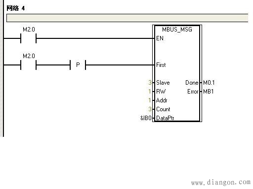 两台cpu224的plc进行Modbus通讯,因为不能监测V存储区的数据,所以想通过主站读取从站的实际输入(I寄存器),显示到主站的输出(Q寄存器) 同时主站的实际输入写入从站的实际输出. 主站的读取可以实现,但是写的程序没能实现.当主站I有实际输入时,从站没反应.