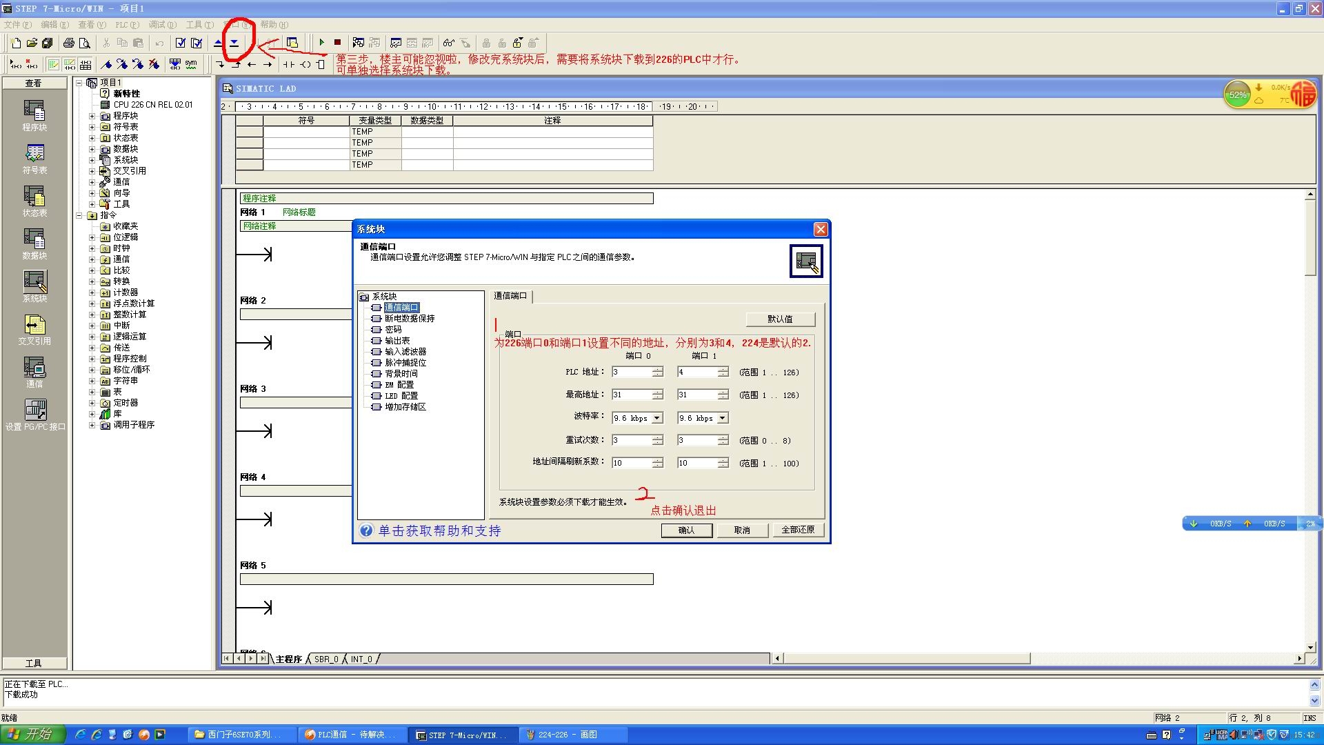 | 我现在是做西门子S7-200plc通信,机型有226和224,,我想把俩台PLC都连起来,不知道什么原因PLC只能读出一台,另外一台就是读不出,我把DP线和电缆线都换过了,电脑主机和PLC也换过了,PLC里地址也改过了,PLC地址我设置2和3,可是就读不出来,可是在其他台电脑就就以。请问这是什么原因,如何更改。 答:1.如果你的电脑和224PLC和226PLC都能单独通信,说明PLC和编程线缆没有问题。连接线缆没有快速剥线工具(订货号:6GK1 905-6AA00)也可用普通斜口钳、壁纸刀也可以代替。打开西门子DP网络接头按照里面颜色标识接线,因为你是二台PLC,注意连接的都是进线。见我上传的图片,在线连接时注意终端电阻的位置要打到ON。 西门子的每个产品都有自己的订货号,常用的西门子PROFIBUS通讯电缆接头订货号如下: 6ES7 972-0BA12-0XA0 是90度网络接头(不带编程口)集成终端电阻, 9针Sub-D插座, 不支持快速连接 6ES7 972-0BB12-0XA0 是90度网络接头(带编程口)集成终端电阻, 9针Sub-D插座, 不支持快速连接 PROFIBUS通信线缆订货号:6XV1830-0EH10 2.网络中224PLC和226PLC的地址不能重复,需要在系统块里修改。最重要的是修改完系统块设置后还要下载到PLC里,这点比较被忽视!!!我刚试了试,见我上传的图片吧。 3.如果在生产现场造成PROFIBUS通讯出现故障,,除编程程序问题外,80%的原因是现场没有接地处理、布线时与动力电缆没有分开、终端和总线电缆阻抗不匹配导致信号反射。 一、最简单处理,第一先查看PROFIBUS 电缆的两端应连接终端电阻是否打到ON,中间的所有站点打到OFF。如果手头还有DP连接器将故障子站进行更换(或子站之间进行调换)同检查通信线缆接线是否正常。DP连接器有一个进线孔(In)和一个出线孔(Out),分别连接至前一个站和后一个站。 二、终端和总线电缆阻抗不匹配时,则最大通讯距离会减少一半。如果可能适当降低一下通信波特率,或使用RS485中继器来增加通信距离。 三、做好通信线缆屏蔽接地和抗干扰,远离干扰源。 将不同电压等级的电缆分线槽布线,通讯电缆与动力电缆避免长距离平行布线,同时线槽应盖上盖板尽量全封闭。如果现场无法分线槽布线,则将两类电缆尽量远离,中间加金属隔板进行隔离,同时金属线槽要做接地处理。通讯电缆单独在线槽外布线时,可根据情况采用穿金属管的方式,这样既可以保护通讯电缆不被损坏,对于防止干扰也有好处,但注意外部的金属管需要接地。通讯电缆过长时,不要盘成环状,建议将过长的电缆剪短,放入柜内的电缆槽内。 4.只有严格按照PROFIBUS的规范进行网络拓扑的设计、遵守布线规则、处理好系统的“地”与“接地”等,将在很大程度上避免总线网络使用中出现的各种问题。 系统块设置参数必须下载才能生效,226PLC端口0和端口1它们是分别独立的,都可以设置一样为3和3,波特率也可以相同。 默认情况下端口0和端口1地址都是2,波特率为9600bps。 你要联网,224PLC和226PLC的地址就要有区分,不能一样,但波特率一定要一样,要不没法进行通信。 226系统块 224-226 我的调试线 |