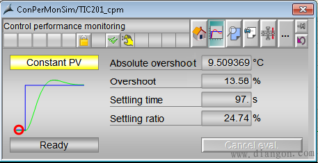 推荐回路投入自动后等待一段时间,软件会自己判定当前回路是否进入稳定状态。也可以通过操作面板上的“cancel eval”按钮来停止计算,手动干预使系统进入稳态评估阶段。