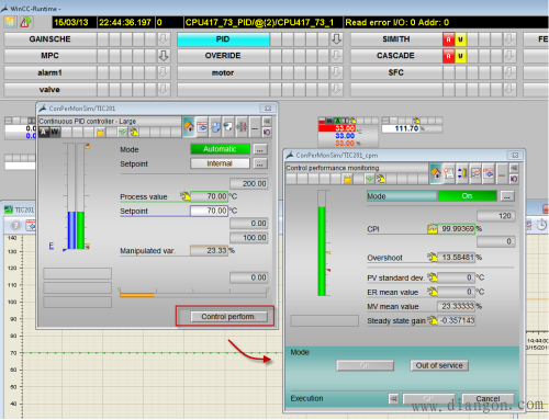 当控制回路出现故障的时候,比如偏差超出设定上限时。CPM会在上位运行画面中产生相应的报警信息。
