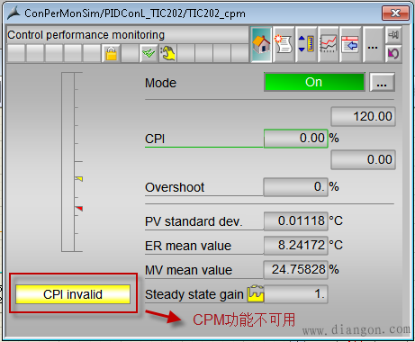 CPM功能块的所有评估依据都是建立在工况不变(控制对象的模型不发生变化)这个前提下的。如果因为设备状态或者负荷改变使工况有了较大的变化,例如重新调整了设定值SP,以之前标准来评估已经失去了参考价值(如:CPI会远低于或远高于100%,但并非是因为控制回路本身的原因)。这个时候我们建议您重新初始化CPM功能块。