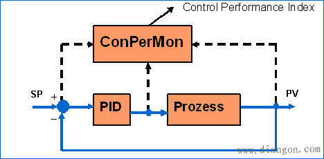 CPM功能块动态的统计、计算和评估控制回路的设定(SP),被控量(PV)和控制量(MV)。并根据这些数据计算出这个控制回路的控制性能指标(CPI)。工作原理如下图: