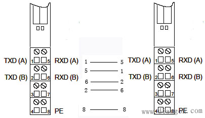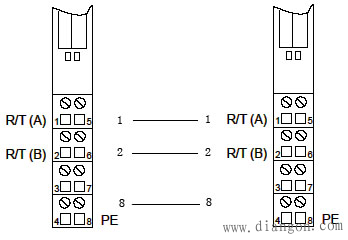 注意:RS485接口内部已经短接,不需要外部短接处理,只要直接连接1,2,8。