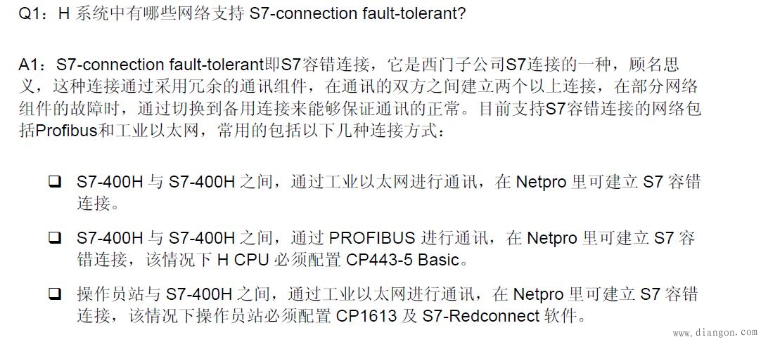 S7连接是s7系统plc之间进行通讯时,采用的一种通讯方式S7容错连接是指400H系统,与上位机通讯时,所建立的链接。1、S7的容错连接:它是西门子的S7的一种连接,通过冗余的通讯组件,双方建立两个以上的连接。详见上传的图片。