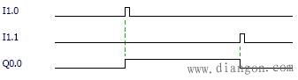 该电路实现线圈(电机)的启动,保持和停止功能。实现了断电保持(意思是启动触点断开,电机也仍然运行)。这个是比较常用的一段电路图。I1.0为启动,I1.1为停止。