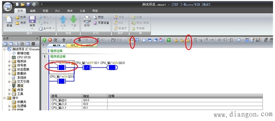 解决了连接问题,赶紧试一下程序下载。一如既往的弄一个起保停电路下载。如图: