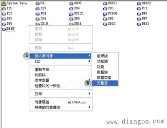 变量表的使用 在程序的调试过程中大家去监控程序的运行情况通常都是在plc与电脑连接的情况下直接打开程序界面,点击监控按钮,然后观察该程序的运行情况。这种调试方法我们对局部程序的运行状况可以有比较直观的监控,但是如果我们想要对一组特定的数据进行监控这种方法就显得不够直观了,因此西门子在Step 7中为我们提供了变量表这个功能,让我们可以对整个项目中任意变量建立表格进行观察,这就是变量表在Step 7中存在的意义。 那么变量表是否只能起到对变量列表进行监控的功能呢?当然不是,如果只能监控变量岂不是显得变量表功能太单调了。下面我就从变量表监控变量、修改变量值、以及对I/O点位的强制这三个方面来向大家介绍变量表的使用。 1、对变量的监控 通常情况下对于使用者来说变量表对于我们最常用的功能还是对变量的监控,下面我们具体向大家演示变量表的建立,以及如何使用变量表监控变量。 1) 在程序界面右键选择插入新对象继续选择变量表即可建立变量表