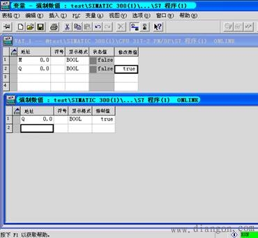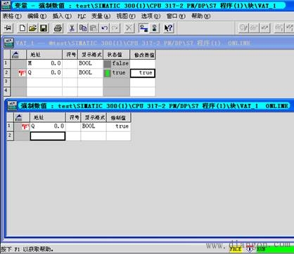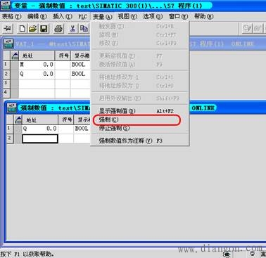 图3-2 2)选择强制按钮,即可进入图3-4所示强制状态,这里我们强制了Q0.0
