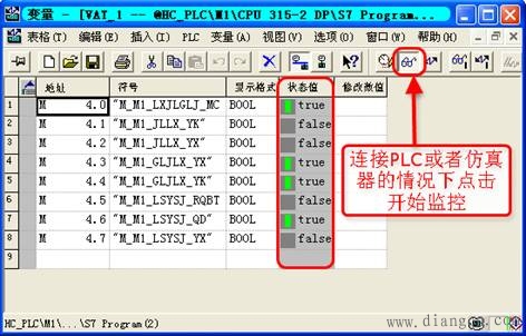 图1-2 3)在连接PLC或者仿真器的情况下我们就可以监控变量的运行状况了