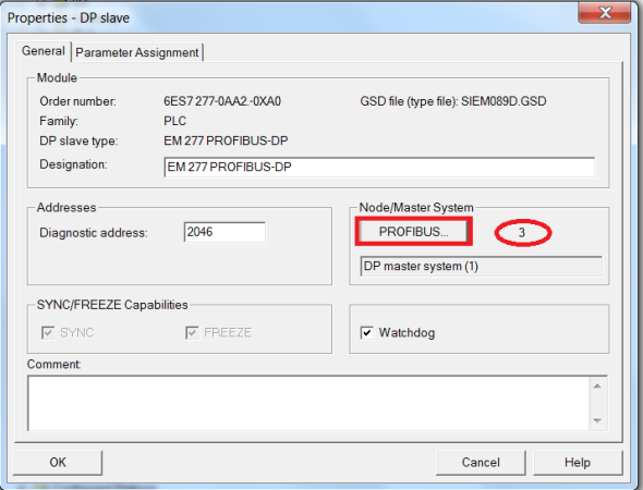 根据EM277上的拨位开关设定以上EM277从站的站地址。
