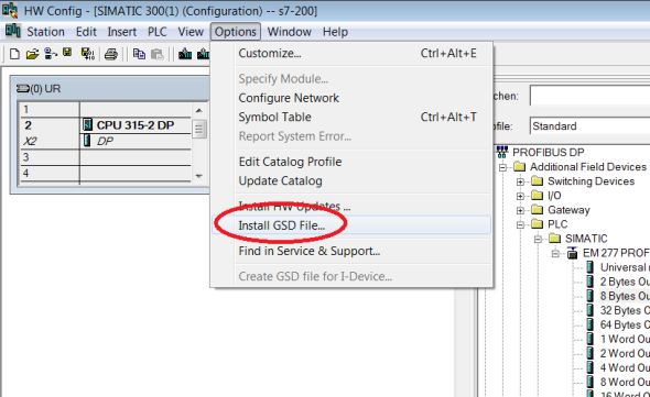 选中STEP7的硬件组态窗口中的菜单 Option® Install new GSD