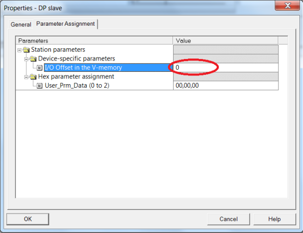 注意:VB0-VB7是S7-300写到S7-200的数据,VB8-VB15是S7-300从S7-200读取的值。EM277上拨位开 关的位置一定要和S7-300中组态的地址值一致。如果使用的S7-200通信区域不从VB0开始,则需要设置地址偏移,在S7-300硬件组态中双击 EM277,修改数值0为实际使用的数值即可,如下图所示: