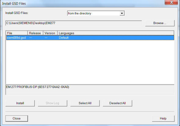 导入SIEM089D.GSD文件,安装EM277从站配置文件,如下图: