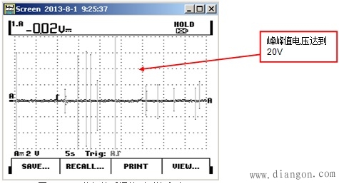 但这里有个问题,就是为何停机时示波器并不是每次都能抓到最大的干扰脉冲?我们的分析,认为应该是由于设备动作时,并不见得每次都能产生最大的干扰;另外,系统干扰可能是一个累积的过程,由于之前感性设备断开时产生的干扰没有能及时的释放掉,因此甚至随后的一个很小的干扰也会最终导致系统出现问题。