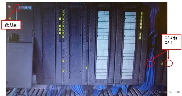 之后随着我们继续观察,大概经过了1个小时后,突然出现了一次停机故障。现象就是CPU停机时,SF灯和STOP灯亮,同时5V灯亮(图3)。