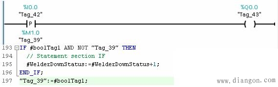 如图1,在SCL编程中,利用可保持的位来实现上升沿检测,其中boolTag1为FC或OB输入参数,Tag_39为M1.0的变量名,利用以上语句可实现boolTag1上升沿检测。注意前一扫描周期状态保持位不能为FC的临时参数,因为临时参数在执行扫描时会设置为0,从而导致程序执行达不到要求。