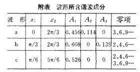 对图1,只要确定X1、X2的值,就可得到不同的波形,且由式(5)可知波形所含的谐波附。附表列出了3种波形的X1与X2的取值与所含主要的谐波。
