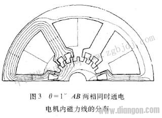 步进电动机的设计和优化设计中最重要的是性能指标的预测,但是由于步进电动机的结构和运行条件特殊,人们在计算过程中往往要作某些假设,例如忽略磁路的饱和或是假定铁心部分的磁压降与转子位置无关等,以求得到简化,这自然会给计算结果带来一定的误差。为了充分考虑电机磁路的饱和对其性能的影响,本文将以样机BF36型磁阻式步进电动机为例,采用有限元数值解法,并借助网格自动剖分技术,对整个电机的求解区域进行磁场分析,求得电机磁场的磁共能,进而计算出电机的静态转矩。磁阻式步进电动机的定、转子齿形尺寸的不同,将影响电机磁路的磁导和电机磁场,从而影响电机的性能。 2静态转矩特性的有限元数值计算 BF36型三相磁阻式步进电动机的结构如图1所示,定子上共有6个磁极,每极上有3个矩形齿,辖子上有Zr=20个均匀分布的矩形齿,定转子齿矩卢18度。电机的UN= 24V,LN= 0.15A,可以单相通电,也可以双相通电运行。 用有、限元数值解法计算磁阻式步进电动机的静转矩。可直接利用电机磁场的磁共能计算电磁转矩的公式[1]。 式中θr一转子的角位移,radθ一转子的角位移, 为了算出电机的静态转矩特性,即矩角特性,就必须研究电机定子磁极线圈在不同电流下,以及转子相对定子有不同位置时的磁场分布情况。由于在齿距t范围内,在  的位置电机磁场对称,故只需研究半个齿距,即9度范围内各个位置的磁场情况即可。 设定转子齿中心线对齐时θ=0,根据电机的结构、+通电方式和磁场对称性,可选定半个电机的空间作为电机磁场的求解区域,图2示出这时求解区的网格剖分。 在某一θ值下磁极线圈通入电流后,经二维磁场的有限元计算[2]可得出此时求解区域内部节点的矢量磁位A值、各单元的磁通密度以及绘出求解区的磁力线分布。图3展示了θ=1度时,A、B两相同时通电的磁力线分布,再经后处理的计算,便可求得通电的磁极线圈所匝链的总磁链ψ。然后,改变电流的数值,再计算该θ位置的磁场和磁极线圈匝链的总磁链新值。这样,重复多次计算后便可得到一组不同的电流及其所产生的磁极线圈磁链,即得出在此转子位置θ下电机的电流与线圈磁链之间的关系ψ=f(I). 如果转子在空间从θ=0起按顺时针方向每转过1度,再重复上述计算,直至θ=9度止(这在有限元数值分析中借助网格自动剖分技术后是容易实现的),从而得出电机在所有10个定、转子相对位置的磁链与电流间的关系。图4是A相绕组通电状态下θ=0和θ=1度时电机的ψ=f(I)关系曲线。从而可用Simpson积分法‘3’分别求出在某一电流下各个θ位置的磁共能遍Wm,例如I= IN=0.15A,θ=0时的磁共能值就是曲边形oaco的面积,θ=1度时的磁共能则为曲边形obco的面积。重复上述步骤,便可求出在此电流下θ=0.1度.2度……9度时所对应的10个电规的磁共能,即有Wm对应于0的10组对应值。然后,再用三次样条插值函数的微分公式(4)就能求得磁共能Wm。对θ导数,并根据式(I)即可得出步进电动机的静转矩特性曲线T=f(θ)。图5和图6表示该电机在额定电流下单相通电和两相同时通电时计算所得的静转矩特性。图7和图8则分别表示所对应的实测结果。两者相比较,最大静转矩的误差在单相通电时是百分之5 .41,两相同时通电时为百分之7.34。 3齿形尺寸对最大静转矩的影响 进电动机不同的定转子齿形配合作过一些基础研究,以探明它们对电机性能的影响,所得出的结论是,定转子的齿形应选用矩形为好。但是,在齿形尺寸上,例如齿高、齿距和齿宽彼此之间是否存在一个最佳的配合,为此,我们对该样机采用不同的齿高与齿距的比值(在同一槽宽时)以及不同的齿宽与齿距的比值(在同一槽高时),进行最大静转矩的计算,表l和表2分别列出它们的计算结果(均为两相同时通电状况),其中表示样机的实际尺寸。由表可见,磁阻式步进电动机定转子齿形除了采用矩形之外,其齿高应尽量接近齿距,齿宽则约为齿距百分之的37.5。 4结语 a.为充分考虑电机的饱和因素,本文从整个电机磁场的磁共能出发,计算了反应式步进电动机单相通电和两相同时通电的静态转矩特性,且计算值与实测值基本接近,说明此理论计算方法是正确的。 b.当齿高/齿距≈_l和齿宽/齿距≈0.375时,磁阻式步进电动机可获得较大的静态转距,这在工厂的生产中可作参考。 |