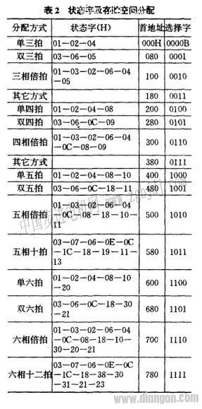 1引言 常用步进电动机有3、4、5、6相4种,运行方式每相依次通电的称单拍,每相邻两相依次通电的称双拍,每单、双相依次通电的称倍拍。对5、6相步进电动机还有其它通电方式,步进电动机的通电方式取决于环形分配器,它是一个能够把单相脉冲信号分配成步进电动机要求的多相控制信号的专用电路。目前,仅三相环形分配器有专用集成块,且性能价格比较低。一般使用的环形分配器是用计数器、触发器等逻辑电路,结构复杂、通用性差。本文给出的环形分配器适用于各种步进电动机及任意分配方式。 2电路的设计思想 对3~6相步进电动机,通电状态可用六位二进制数表示,称为状态字,连续不断地输出状态字就可控制步进电动机的运行。状态字序列是周期循环的,其周期(一个循环中状态字的个数)及每个状态字均取决于步进电动机的相数和分配方式,而相邻状态字之间的时间则控制着步进电动机的运行频率和转速。表1给出了各种相数的步进电动机的常用分配方式,由此可得表2所示各种分配方式的状态字序列。值得注意的是,各种分配方式的状态字周期分别是3、4、5、6、8、10、12,它们的最小公倍数为120,以120为汁数周期则可把各种分配方式统一起来。通用型环形分配器正是据此由选择字(与分配方式对应)选择相应的周期为120拍的状态字序列的电路。 3电路原理 通用环形分配器的电路实现如附图所示。两片4516与门电路配合级连成120进制加减计数器。加计数时,U/D为高电平,从00H到77H计数器的CLR端一直为低电平;下一拍计到78H时,CLR变高,立即使计数器清零,开始下一个120拍计数周期。减计数时,U/D为低电平,计数器减到零时,借位端变低电平,通过反相器使置数端PE有效,置入78H,开始下一个减计数周期。注意两种情况下00H和78H都是在一拍内翻转的。 图中,2K存贮器2716存放着各种分配方式下的状态字。4位拨动开关提供高4位地址(即选择字),把存贮空间分成16个区。每个区128字节,对应一种分配方式。各种分配方式对应的地址区间及选择字如表2所示。例如:对单三拍方式,其选择字为0000B.地址区间为000H―07FH,三掐状态字重复40次存放在前120个单元中。虽然只需存贮120字节即可规定一种分配方式,但实际应用中最好把l28字节存满,使最后8个单元中的状态与开始8个单元中的状态相同,这样做可以使两个计数周期之间过渡平滑。存贮器的低7位地址由120进制计数器产生,每计一个敬,存贮器就会输出一个相应于计数值和选择字的状态字。计数器连续不断地计数,就可产生出各种分配方式下的状态字序列,而分配方式的决于选择字。另外,CLR端接的小电容的作用是消除计数翻转时产生的尖峰干扰。 4结语 存贮器固化的状态字数据可以用单板机编程产生。120进制计数器也可用PAL或GAI。电路实现。试验表明,通用环形分配器工作可靠,性能稳定,存贮空间及分配方式也可根据需要灵活安排。 |